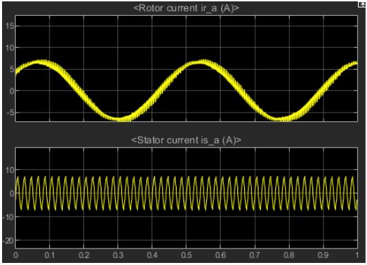Fig 14. Rotor current (top) and stator current (bottom) of AC motor (A).