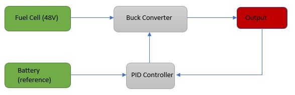 Due to the fuel cell having a much higher voltage than the battery, a buck