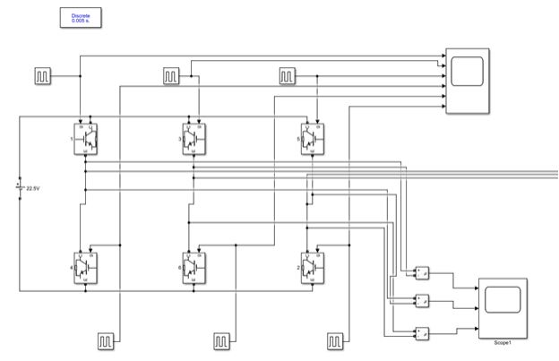 and is made with 6 PWM controlled diodes. The model in Simulink uses an IGBT